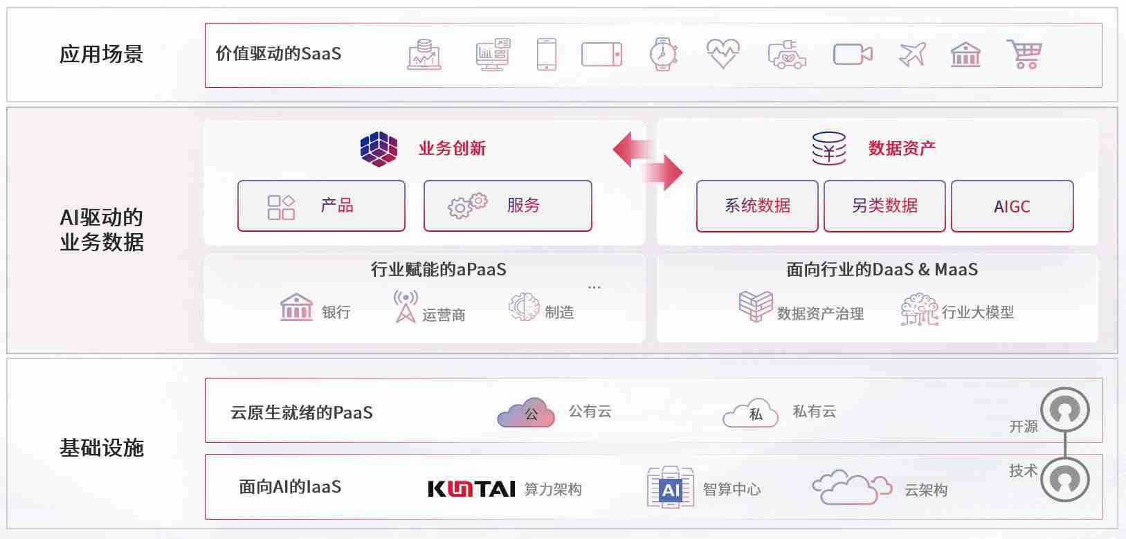 数字时代,,围绕企业数字化转型的关键要素,,,,ABPAY钱包数码开创性的提出数云融合战略和技术体系框架,,着力在云原生、、数字原生、、、AI原生和信创产业上架构产品和服务能力,,为处在不同数字化转型阶段的快消零售、、、、汽车、、、、金融、、、医疗、、政企、、、、教育、、、、运营商等行业客户提供泛在的敏捷IT能力和融合的数据驱动能力,,,构建跨界融合创新的数字业务场景和新业务模式,,助力企业级客户建立面向未来的核心能力和竞争优势,,,全面推动社会的数字化、、智能化转型升级。。。